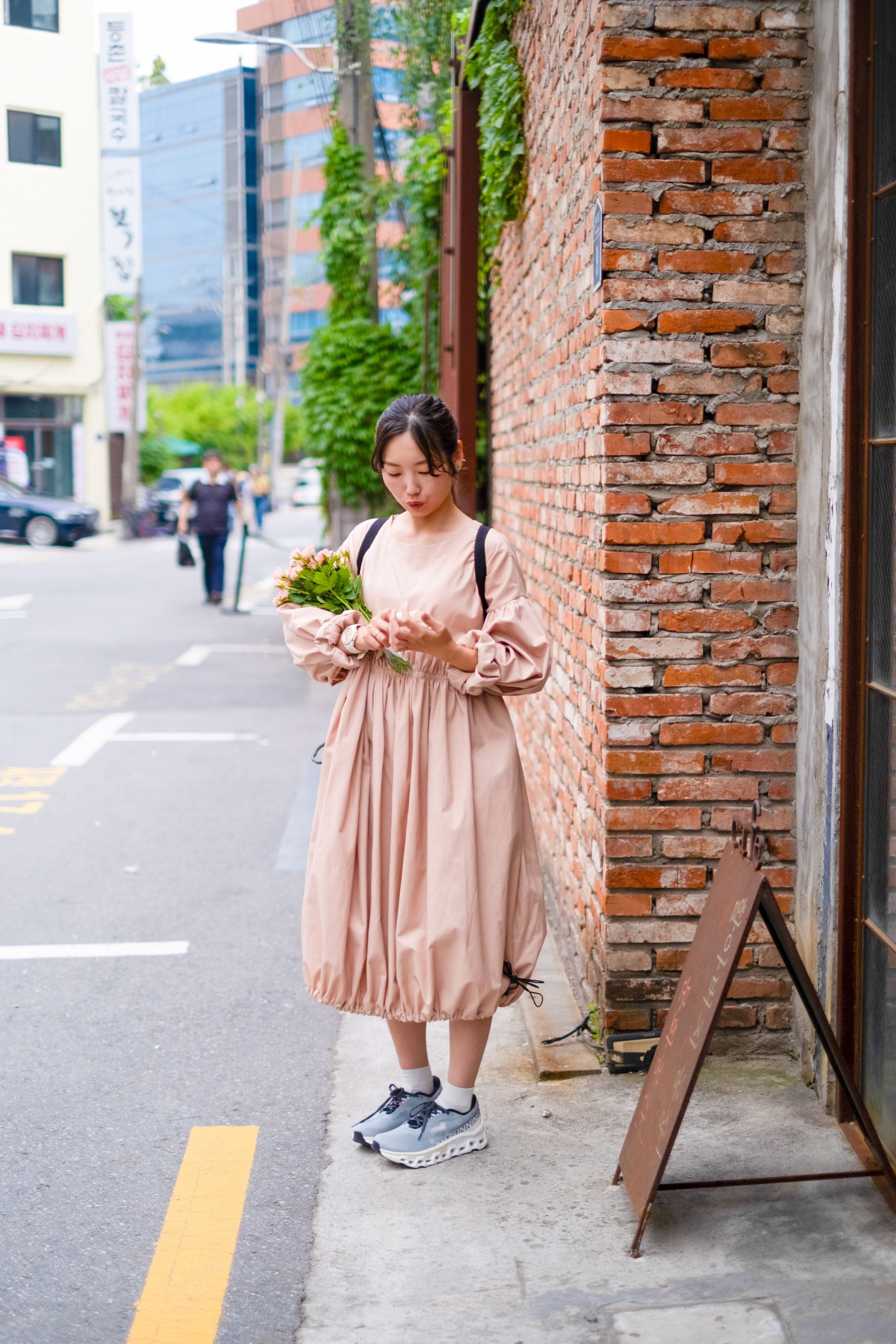 パジャマの上からワンピースをばさっと羽織ってクシュっとまとめて。